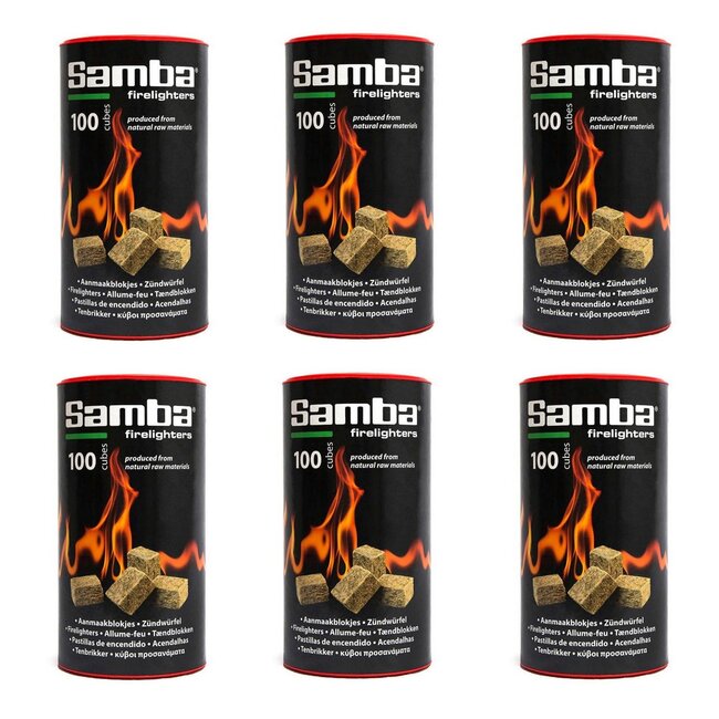 Samba bruine aanmaakblokjes: 600 stuks in handige kokers. Milieuvriendelijk, geurarm en veilig; steek barbecue, openhaard of vuurkorf snel en zorgeloos aan. Lees meer.