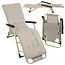 Opvouwbare ligstoel beige met 3 standen, dikke kussenmat en hoofdsteun. Comfortabel voor tuin, terras, strand of camping en eenvoudig op te bergen. Lees meer.
