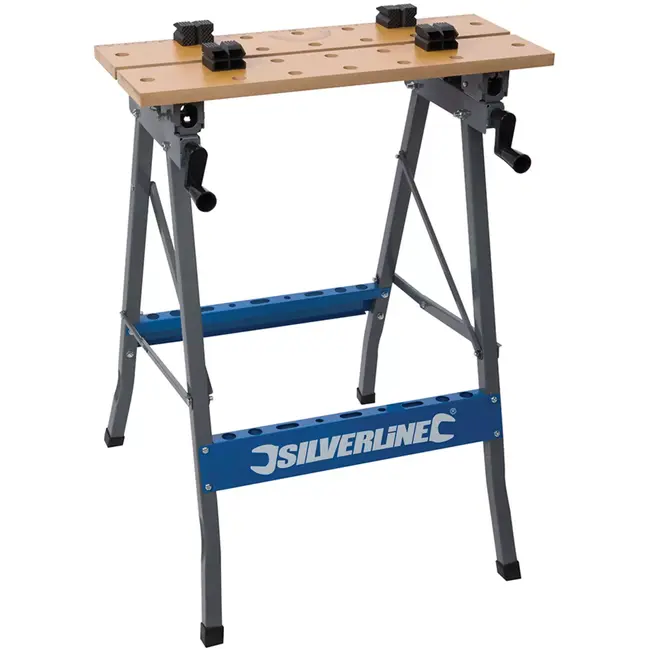 Silverline werkbank in zware uitvoering: robuust stalen frame, kantelbaar werkblad (0°, 45°, 90°). Draagvermogen tot 150 kg; klaar voor elke klus. Lees meer.