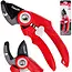 De rode ergonomische handgreep ligt prettig in de hand en voorkomt vermoeidheid bij langdurig gebruik. Voor de veiligheid is de snoeischaar uitgerust met een vergrendeling en een handig ophangoog, zodat je hem veilig kunt opbergen en altijd binnen handbereik hebt.
