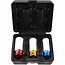 Duurzame impactdopsleutelset van GEKO voor aluminium velgen, met maten 17, 19 en 21 mm. Gemaakt van Cr-Mo staal met kunststof hulzen voor krasvrij werken. Lees meer.