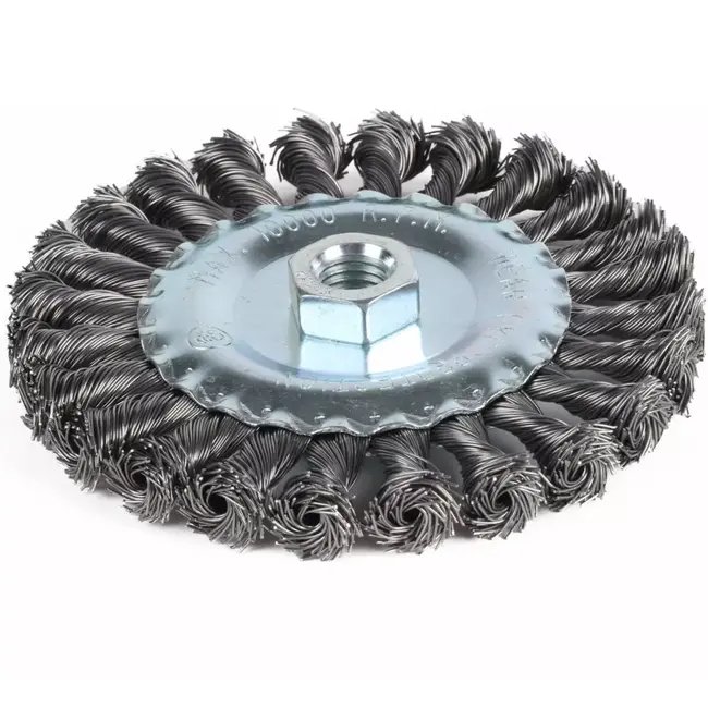 Zoekwoorden: Getordeerde rondborstel, Staal, Benson, M14, 125mm, Lasnaden, Verf, Oxidatie, Geharde draad, Haakse slijper, Borstel.
