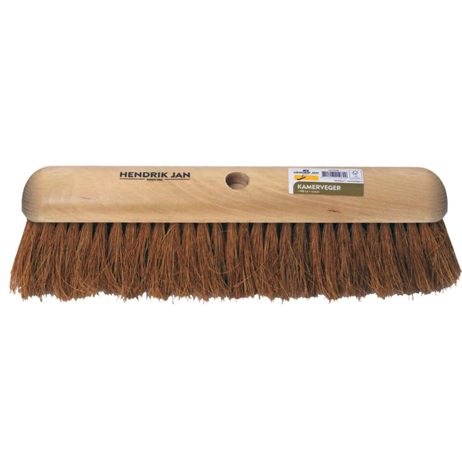 kamerveger, kokos kamerveger, bezem 40 cm, kokos bezem, binnenbezem, fijn vuil vegen, tegelvloer vegen, betonvloer vegen, zachte natuurvezels, FSC bezem