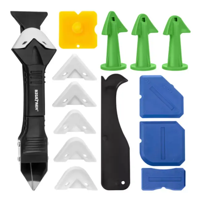 Gemaakt voor langdurig en betrouwbaar gebruik. De onderdelen zijn vervaardigd uit materialen zoals PP, ABS, TPR en roestvrij staal, wat zorgt voor stevigheid en flexibiliteit tijdens het werken. De roestvrijstalen rand maakt het eenvoudig om oude kit te verwijderen zonder beschadiging van oppervlakken. Daarnaast hecht siliconen nauwelijks aan de tools, waardoor schoonmaken snel en eenvoudig blijft.