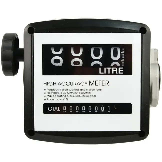 Betrouwbare dieselmeter met nauwkeurige 4-cijferige teller en totaalweergave. Geschikt voor oliestromen van 20-120 liter per minuut. Duurzaam en efficiënt. Lees meer.
