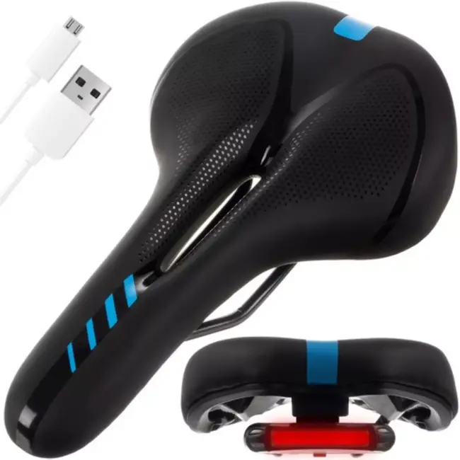Een modern fietszadel dat niet alleen zacht en comfortabel is, maar ook uitstekend trillingen dempt, waardoor fietsen een genot wordt. Het zadel is uitgerust met een ingebouwd licht en speciaal schuim dat schokken absorbeert tijdens het rijden.