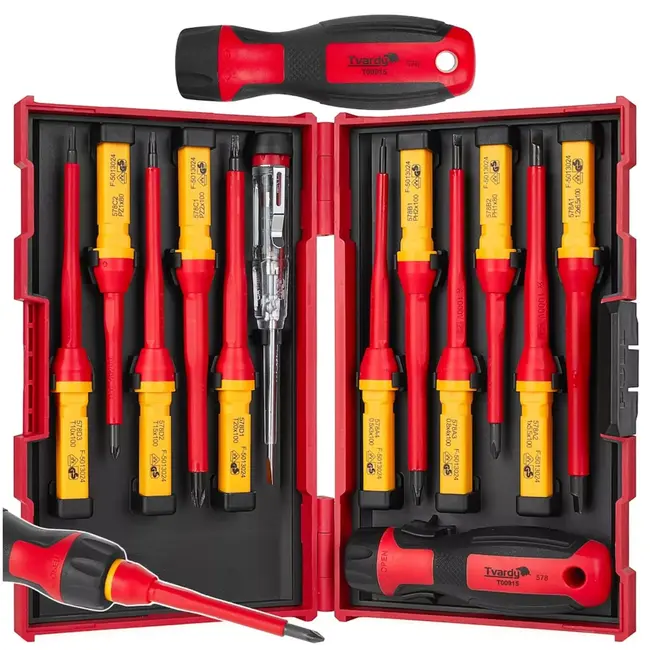 VDE schroevendraaierset, geïsoleerde schroevendraaiers, elektrische schroevendraaierset, schroevendraaier set 1000 V, VDE gereedschap, schroevendraaier bits set, Torx schroevendraaier VDE, PH PZ schroevendraaier, spanningszoeker schroevendraaier, gereedschap elektricien