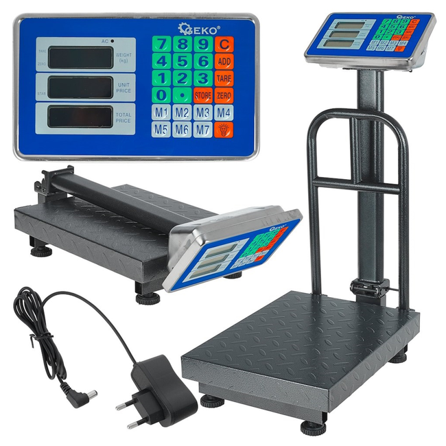 platformweegschaal 150 kg, elektronische platformweegschaal, weegschaal 150 kg, platformweegschaal 30 x 40 cm, magazijn weegschaal, werkplaats weegschaal, winkel weegschaal, groothandel weegschaal, stalen platformweegschaal, platformweegschaal met display op paal, weegschaal met prijsberekening, weegschaal met totaalprijs, tarra functie weegschaal, nulstelling weegschaal, optelfunctie weegschaal 0 tot 99, 7 prijsgeheugens, m1 m7 prijsgeheugen, weegschaal op accu, oplaadbare weegschaal, accuduur 60 uur, weegschaal netstroom, verstelbare voeten weegschaal