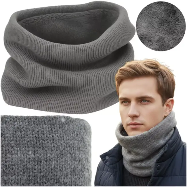 nekwarmer heren, grijze sjaalkraag, winteraccessoire, trizand sjaal, warme colsjaal, zachte nekwarmer, fleece halswarmer, heren wintersjaal
