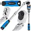 Verstel, bereik en ratel met minimale beweging. De telescopische steel vergroot je hefboomwerking wanneer je extra kracht nodig hebt en schuift in voor compacte controle in nauwe ruimtes. De zwenkkop geeft je de ideale hoek om om obstakels heen te werken. Met het 72-tands mechanisme heb je slechts 5° terughaalhoek nodig, zodat je zelfs in zeer beperkte slagruimte effectief kunt ratelen. Perfect voor automotive, fietsen, machines en algemene montage. Tip: gebruik met passende doppen voor een veilige passing en maximaal koppel.