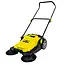 De veegmachine is uitgerust met twee voorborstels en een extra achterste reinigingskrukas, aangedreven door een flexibele rubberen riem. Hierdoor draaien alle borstels krachtig mee zodra je het apparaat vooruit duwt. De rubbergecoate wielen garanderen een goede grip op verschillende ondergronden en maken manoeuvreren eenvoudig, zelfs op langere stukken zoals opritten of magazijnpaden.