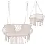 Comfortabele dubbele hangstoel in crème met 3 zachte kussens. Ideaal voor tuin, balkon of terras. Ruime relaxstoel voor twee personen met stevige ophangtouwen. Lees meer.