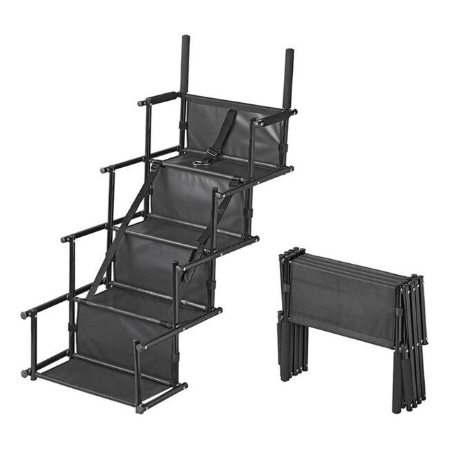 Een van de grootste voordelen van deze hondentrap is het opvouwbare ontwerp. Wanneer de trap niet in gebruik is, kun je hem eenvoudig opvouwen tot een compact formaat van 46 x 39 x 11 cm. Dit maakt het gemakkelijk om de trap op te bergen in de kofferbak van je auto of thuis in een kast. Uitgevouwen heeft de trap een royale afmeting van 101 x 47 x 76 cm, waardoor hij geschikt is voor vrijwel elke auto.
