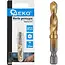 Deze tapboor is ontworpen om zowel te boren als te tappen in één enkele beweging, wat je workflow aanzienlijk verbetert en tijd bespaart. De hoge kwaliteit van het High Speed Steel (HSS) materiaal, gecombineerd met een titanium coating, zorgt voor uitzonderlijke duurzaamheid en weerstand tegen slijtage en hitte. Hierdoor is deze tapboor ideaal voor nauwkeurig boren en tappen, zelfs op moeilijk bereikbare plaatsen.