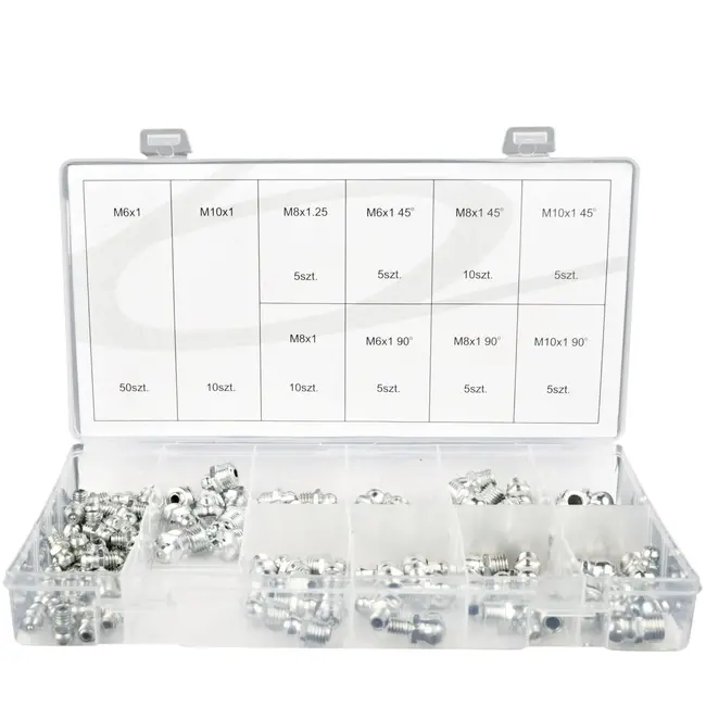 Met tien populaire maten, waaronder M10 x 1 fittingen in zowel 90 graden als 45 graden hoeken, biedt deze set een ongeëvenaarde veelzijdigheid. Of je nu een moeilijk bereikbare plek moet smeren of een standaard onderhoudsklus uitvoert, deze set heeft de juiste fitting voor jou.