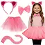 kattenkostuum kind roze, Kruzzel verkleedset kat, carnavalskostuum meisje roze kat, 4-delig katten verkleedpak, Halloween kattenoutfit roze