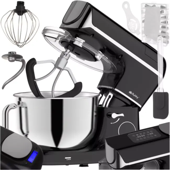 Ruhhy keukenmachine met verwarmde 5,5 l kom, weegschaal, timer, 11 snelheden en accessoires. Mixen, kneden en verwarmen in één multifunctioneel apparaat. Lees meer.