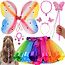 vlinderkostuum kind, verkleedset vlinder, carnaval kostuum meisje, vleugels en rokje set, kleurrijk verkleedkostuum, toverstaf en diadeem, feestkostuum kinderen, sprookjeskostuum meisje, 6-delige vlinderset, kostuum 3 tot 10 jaar