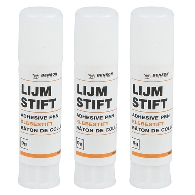 De Benson lijmstiften komen in een handige verpakking van 3 stuks, zodat je altijd een lijmstift bij de hand hebt wanneer je die nodig hebt. De hoge watersamenstelling van 76,65% zorgt ervoor dat de lijm soepel aanbrengt en snel droogt, zonder dat het papier gaat bobbelen. Bovendien is de lijm gemaakt van pvp-materiaal, wat zorgt voor een sterke en langdurige hechting.