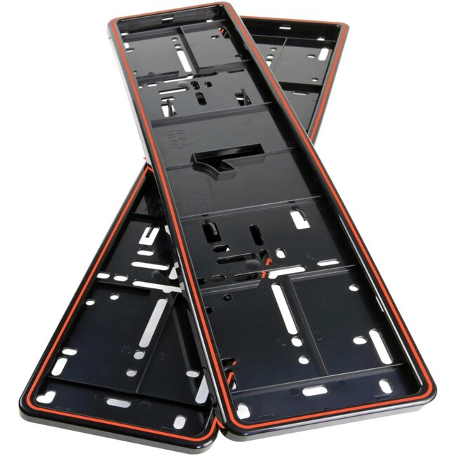 Alti Giri, Alti Giri MONO kentekenplaathouders in rode stijl set van 2, kentekenplaathouder auto exterieur, ABS-kunststof, rode omlijsting, kliksysteem 14 nokjes, krasbestendig, eenvoudige montage, schroefbevestiging, EU formaat 520 mm x 110 mm, autostyling, voertuigaccessoire, styling exterieur