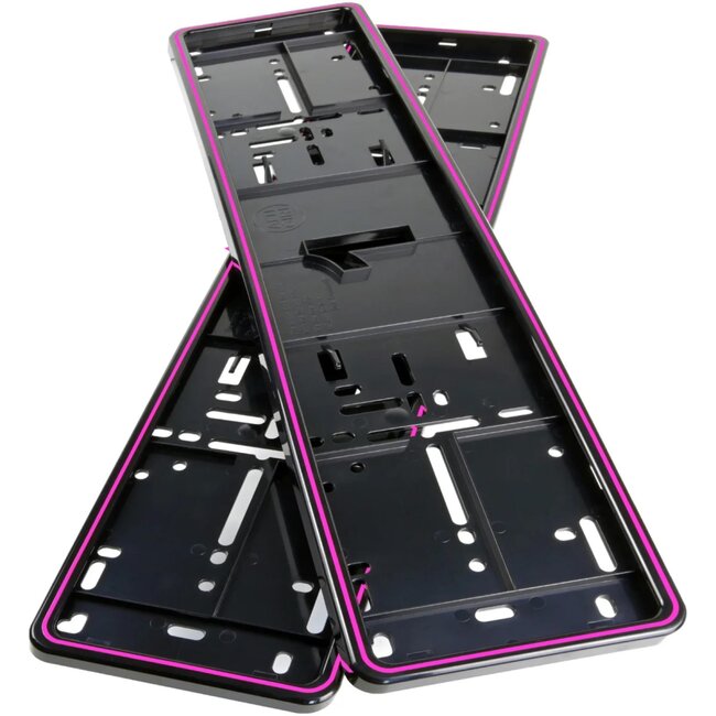 Geef je auto meer stijl met Alti Giri MONO kentekenplaathouders in roze. Robuust, krasvrij ABS, klikbevestiging met 14 nokjes. Past 520 x 110 mm. Set van 2. Lees meer.