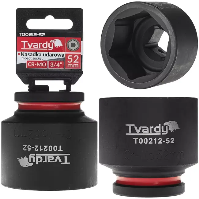Tvardy 6-kant dop 52 mm van CR-MO, kort model met 19 mm vierkant. Voor slagmoersleutels: oersterk, perfecte grip en minder kans op dolgedraaide bouten. Lees meer.