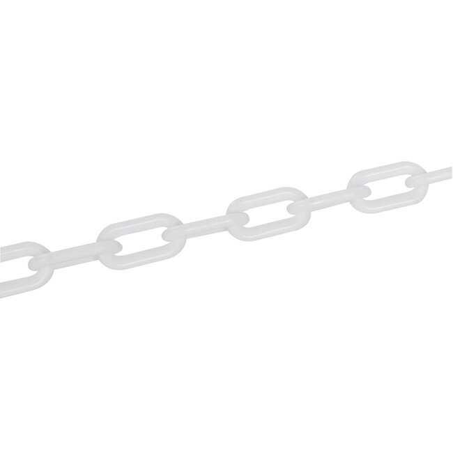 Gebouwd om lang mee te gaan, ongeacht het weer. De ketting is gemaakt van duurzame kunststof die niet roest, waterbestendig is en probleemloos buiten kan blijven liggen. Regen, wind en zon zijn geen probleem, terwijl de witte kleur goed zichtbaar blijft en eenvoudig schoon te maken is. De stevige schakels behouden hun vorm, waardoor je langer kunt vertrouwen op een strakke en veilige afzetting met minimaal onderhoud.