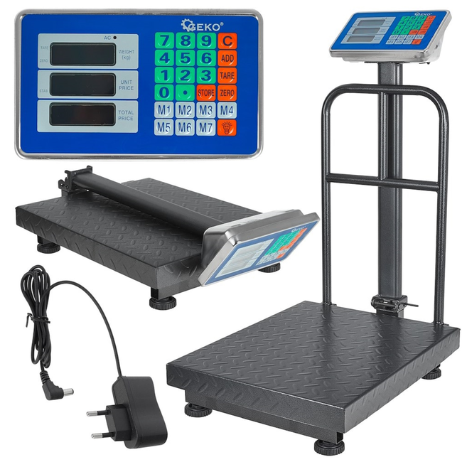 platformweegschaal, elektronische platformweegschaal, weegschaal 300 kg, platform weegschaal 40 x 50 cm, magazijn weegschaal, werkplaats weegschaal, winkel weegschaal, stalen platformweegschaal, platformweegschaal met display op paal, led weegschaal, weegschaal met prijsberekening, weegschaal met totaalprijs, tarra functie weegschaal, nulstelling weegschaal, optelfunctie weegschaal, optellen 0 tot 99 items, geheugen eenheidsprijs, 7 prijsgeheugens, weegschaal op accu, weegschaal met oplaadbare accu, accuduur 60 uur, weegschaal netstroom, verstelbare voeten weegschaal, groot weegplatform