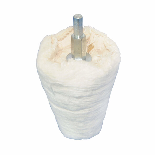 Gebouwd voor een langdurig, constant polijstresultaat De kegel is opgebouwd uit lagen hoogwaardig katoen die stevig zijn verlijmd voor een stabiele, trillingarme loop. De solide stalen spandoorn zorgt voor veilige, nauwkeurige opname in je boormachine. Katoen verdeelt polijstpasta egaal en voorkomt snelle warmteopbouw, zodat je gecontroleerd kunt werken. Bij juist gebruik en onderhoud gaat de polijstkegel lang mee. Tip: klop na gebruik het katoen uit en bewaar droog voor maximale levensduur.