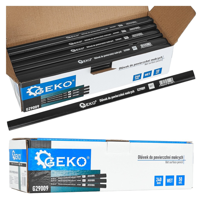 potlood voor natte oppervlakken, WET potlood, nat oppervlak potlood, vochtige ondergrond markeren, markeerpotlood nat, timmermanspotlood nat, bouw potlood zwart, aftekenpotlood buiten, potlood regen, potlood vocht, markeren op beton, markeren op steen, markeren op baksteen, markeren op nat hout, geïmpregneerd hout markeren, aftekenen bouwmaterialen, installatie potlood, industrieel markeren, renovatie aftekenen, buitenwerk markeren, platte timmermansvorm potlood, potlood rolt niet weg, potlood 240 mm, bulkverpakking potloden, displaydoos 50 stuks, voorraad potloden bouw, potloden voor aannemers, markeerpotlood voor montage, aftekenen in vochtige omstandigheden, bouw en installatie gereedschap