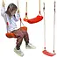 Gemaakt om betrouwbaar aan te voelen in normaal gebruik. De schommelzitting is gemaakt van slagvast kunststof in een opvallende rode kleur. Het oppervlak is licht gebogen voor extra comfort en voorzien van antislipstructuur. De ophangtouwen zijn gemaakt van sterk polypropyleen en zijn in lengte verstelbaar, zodat de schommel altijd op de juiste hoogte hangt. De bevestigingsogen zijn vervaardigd uit verzinkt staal voor optimale veiligheid.