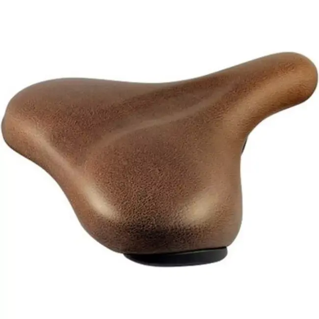 Het zadel is vervaardigd met een hoogwaardige bruine PU lederen toplaag die niet alleen duurzaam is, maar ook een luxe uitstraling heeft. Onder deze toplaag bevindt zich HR-schuim met hoge elasticiteit, dat zich aanpast aan je lichaam en schokken absorbeert. Dit betekent dat je zelfs op hobbelige wegen comfortabel blijft zitten.