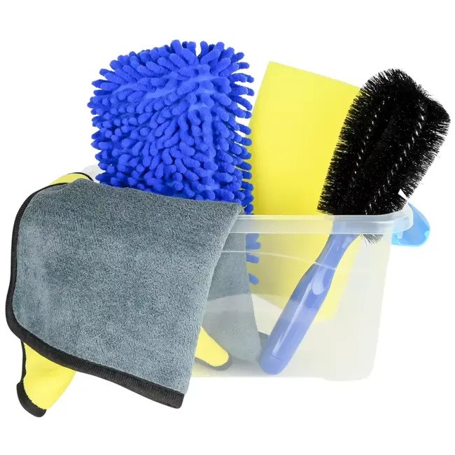 Een handige en overzichtelijke schoonmaakset voor iedereen die zijn auto netjes wil onderhouden zonder losse accessoires te hoeven verzamelen.