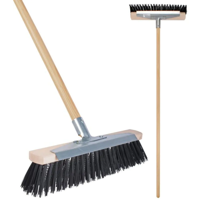 Tips Maak de bezem na gebruik goed schoon en bewaar hem op een droge plek om roestvorming te voorkomen. Om de houten steel te beschermen kan er urethaan op aangebracht worden.