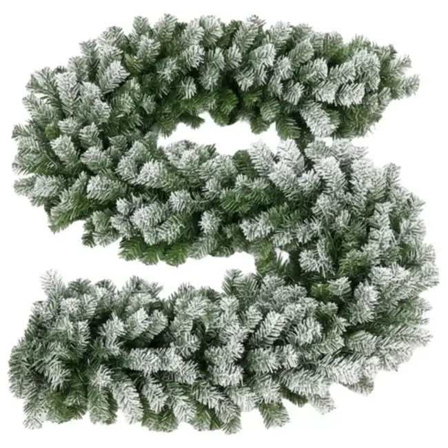 Luxe Ruhhy kerstguirlande 270 cm met sneeuw-effect. Dichte PVC takken, buigbaar frame en duurzaam ontwerp – ideaal voor binnen en buiten. Lees meer.