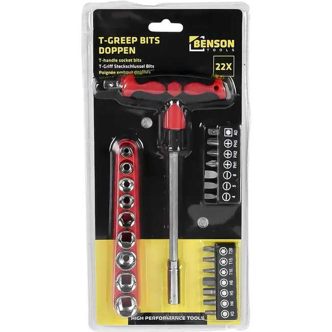 T-greep bits doppen 22-delig, met grip, Benson, Benson bit, Benson T-greep bits doppen 22-delig, bit, bit met grip, Benson met grip