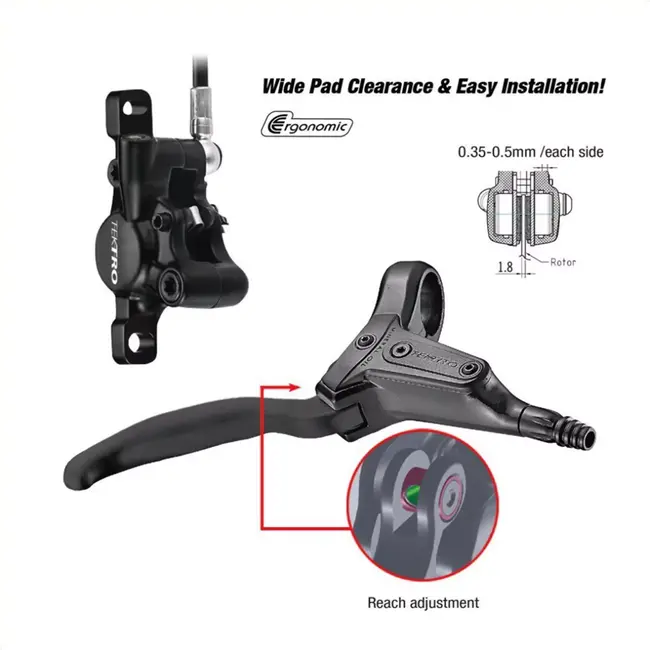 Een van de grote voordelen van de Tektro HD-T386 is het gebruiksgemak. De rem is ontworpen met het oog op eenvoudige installatie en onderhoud, zodat je meer tijd kunt besteden aan fietsen en minder aan het sleutelen aan je fiets. De 1800mm lange leiding is ideaal voor trekkingtoepassingen en biedt voldoende flexibiliteit voor verschillende fietsconfiguraties. Let op: de rem wordt geleverd zonder remschijf, zodat je deze naar eigen voorkeur kunt kiezen.