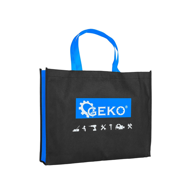 Je gebruikt deze tas flexibel voor shoppen, meenemen en uitdelen. Het formaat maakt hem handig voor het vervoeren van producten, documenten, verpakkingen of lichte aankopen. De brede opening zorgt ervoor dat je spullen eenvoudig in- en uitpakt. Door de platte zijkanten en de extra diepte van 9 cm blijft de tas functioneel zonder veel ruimte in te nemen wanneer hij leeg is. De opvallende GEKO-opdruk op de voorzijde geeft de tas een herkenbare uitstraling, wat hem ook geschikt maakt als reclametas of winkeltas. Of je hem nu gebruikt voor boodschappen, als promotietas of als praktische draagtas voor onderweg, dit model is overzichtelijk, eenvoudig en direct inzetbaar.