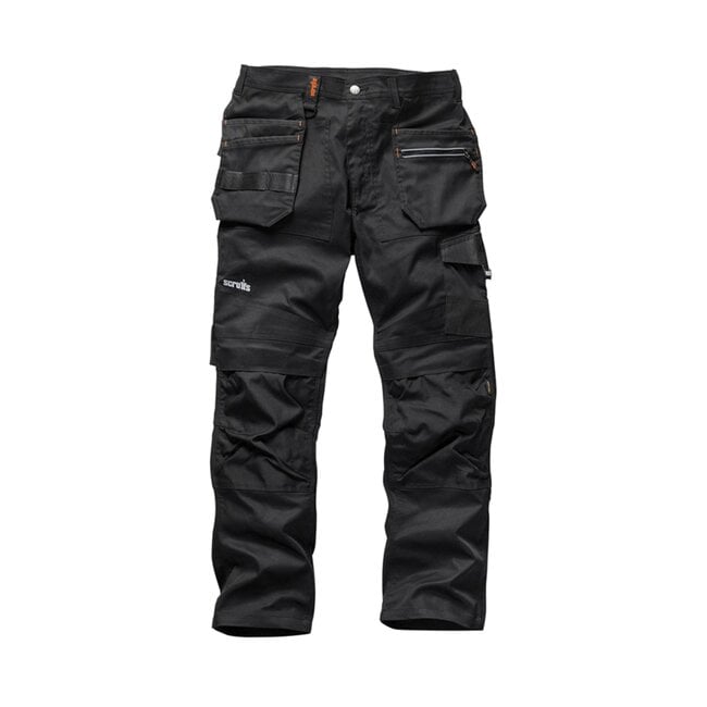 Scruffs, flexibele werkbroek met kniezakken, werkbroek, CORDURA kniezakken, stretch werkbroek, holsterzakken, driedubbel gestikte naden, 250 g/m², zwart, maat 56L, comfortabele werkbroek, duurzame werkkleding, bouwplaats, installatie, werkplaats, magazijn, klussen