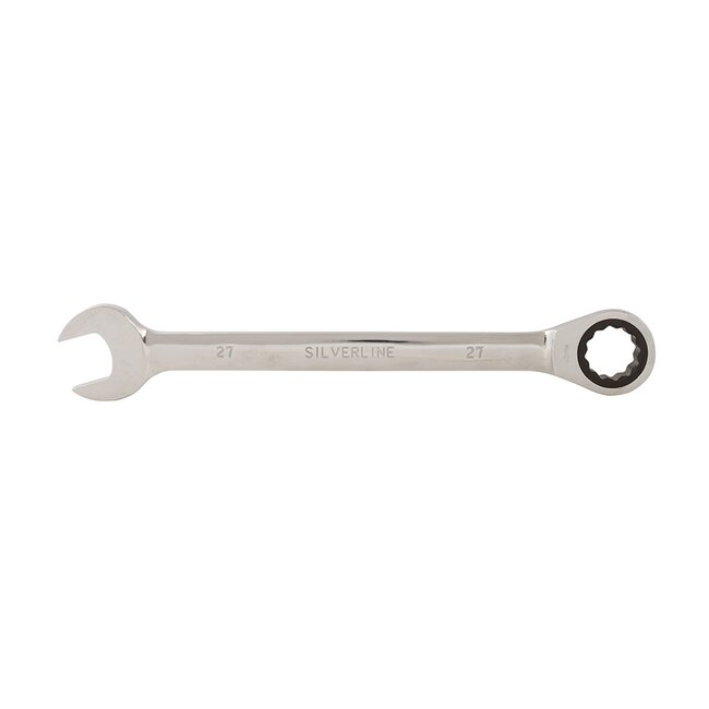 Silverline, Silverline ringratelsleutel 27 mm, handgereedschap, sleutelgereedschap, steek- en ringsleutels, 27 mm, 5° ratelactie, hoogglans verchroomd, corrosiebestendig, 12-kant ring, 15° gehoekte bek, omkeerbare ratel, snel werken in krappe ruimtes, duurzaam CR-V, automotive, montage, installatiewerk