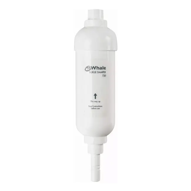 De originele Whale Waterdemper is een drukstabilisator die zorgt voor een gelijkmatige waterstroom en vermindert zowel geluid als trillingen in je watersysteem. Dit praktische accessoire verhoogt het comfort aan boord van je boot, camper of caravan door de waterdruk te reguleren en zo een rustiger en betrouwbaarder gebruik te garanderen. Bovendien beschermt de waterdemper de drukschakelaar in systemen die onder druk staan, waardoor de levensduur van je watersysteem wordt verlengd.