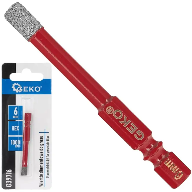 GEKO, diamantboor voor gres 6 mm met HEX-opname, diamant tegelboor, 6 mm, 6,35 mm HEX, waxvulling, droog boren, diamantlaag 10 mm, 1000 omw/min, precies boren, lange levensduur, antislip schacht, gres, keramische tegels, porselein, natuursteen, badkamer, keuken, montagegaten