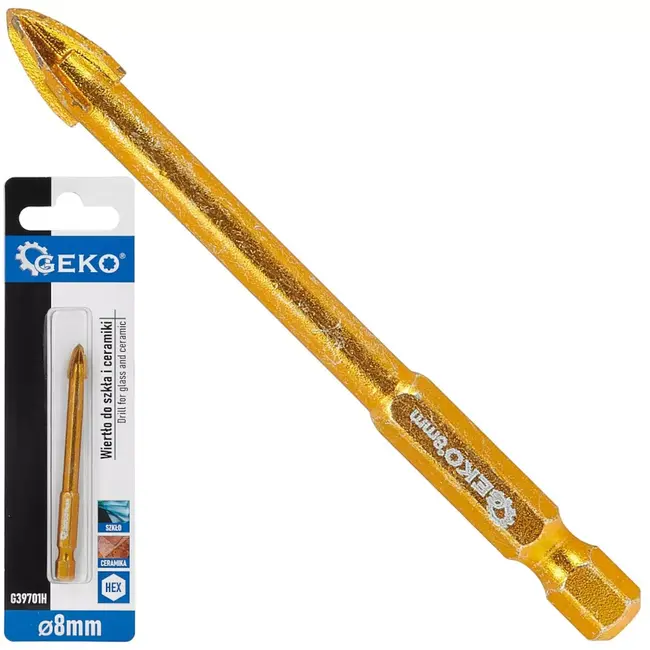 GEKO, Glas- en keramiekboor HEX 8 mm, glas- en keramiekboor, wolframcarbide, 4 snijkanten, HEX 6,35 mm, 8 mm boor, boor voor glas, boor voor tegels, tegelboor, porselein, porseleingres, nauwkeurig boren, splinterarme gaten, montage badkameraccessoires, renovatie, afwerking