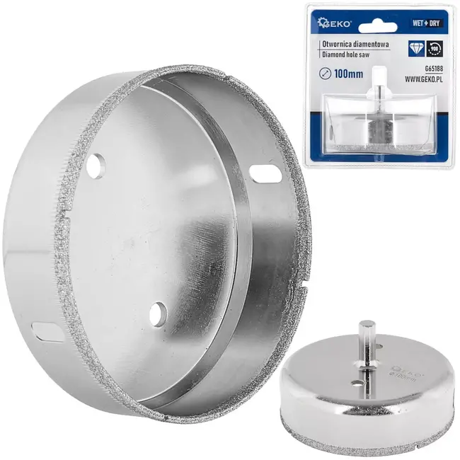 GEKO diamantboorkroon 100 mm voor gres, tegels en steen. Boort nat of droog snel en splintervrij. Cilindrische schacht past op de meeste boormachines; duurzaam. Lees meer.
